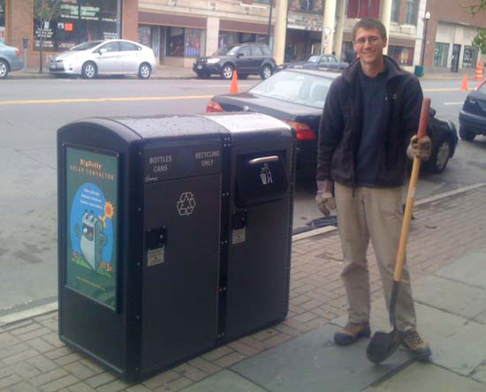 | Thùng rác tự nén sử dụng năng lượng mặt trời Big Belly Bins có sức chứa gấp 8 lần so với thùng rác bình thường cùng kích cỡ. Ảnh: SWNS. |