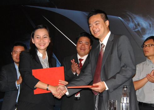| Đại diện FPT Distribution và Asus trong lễ ký kết phân phối laptop sáng 19/4 tại TP HCM. Ảnh: Hà Mai. |
