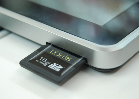 Nút nguồn và giắc tai nghe được đặt bên cạnh phải. Cạnh trái có microphone, nút keyboard và khe gắn card SD.
