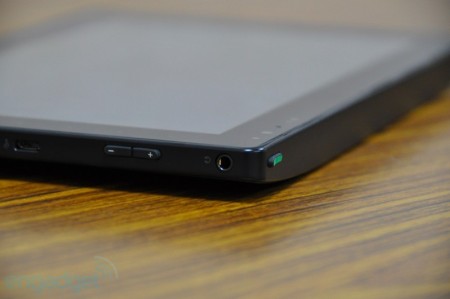 Cổng microUSB, phím bấm tăng giảm âm lượng và giắc 3,5 mm ở cạnh bên.