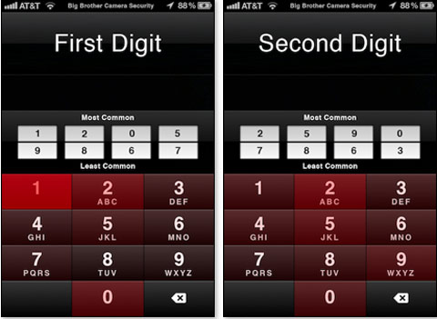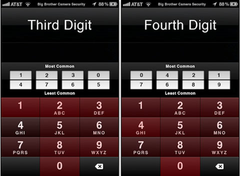 Cuộc khảo sát được tác giả của phần mềm Big Brother Camera Security (Free) thực hiện với một số dòng lệnh thêm vào phần mềm này để ghi lại mã khóa của những máy iPhone có cài phần mềm nêu trên đã cho 1 kết quả đáng giật mình: 10 mã khóa iPhone thông dụng nhất là 1234, 0000, 2580, 1111, 5555, 5683, 0852, 2222, 1212, 1998.