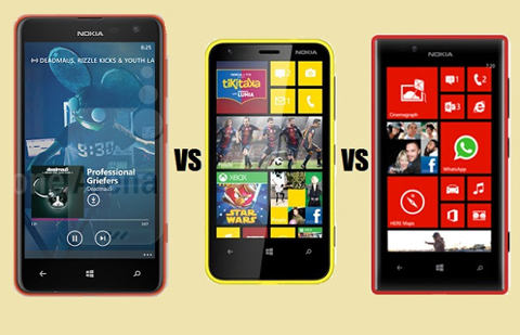 | Lumia 625 “bé bự” 4,7 inch bên cạnh các tiền bối Lumia 620 và Lumia 820. |