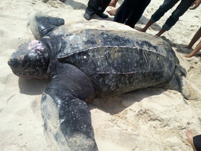 | Mấy chục năm trở lại đây, các nhà khoa học mới ghi nhận con rùa da lên đẻ trứng ở Bãi Dài. |