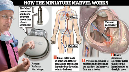 Giáo sư John Morgan thuộc Bệnh viện Đa khoa Southampton (Anh) cho biết, máy đo mini này được cấy vào tim bệnh nhân thông qua một ống thông tĩnh mạch. Các hoạt động đơn giản này chỉ mất 10 phút và bệnh nhân có thể khôi phục bình thường chỉ trong 2-3 ngày thay vì 6 tuần như trước đây. Vì không cần phẫu thuật cấy ghép nên quy trình này sẽ giảm nguy cơ nhiễm trùng có khả năng dẫn đến tử vong.