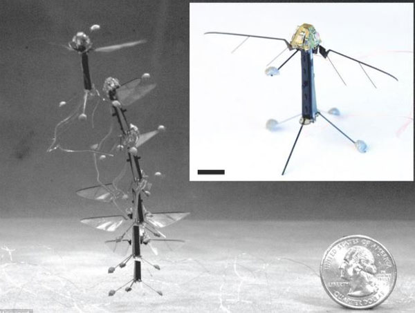 Dòng máy bay không người lái này được gọi là robo-fly, nặng chỉ 106mg, trang bị đôi cánh vỗ như chim nhờ lớp cơ bắp điện tử. Nó đã chứng minh tính hữu dụng khi được sử dụng trong tìm kiếm cứu nạn, cứu hộ vì có thể luồn lách qua khoảng trống hẹp giữa các đống đổ nát. Robo-fly còn có thể dùng để giám sát môi trường, thậm chí là thụ phấn cho cây trồng trong tương lai.