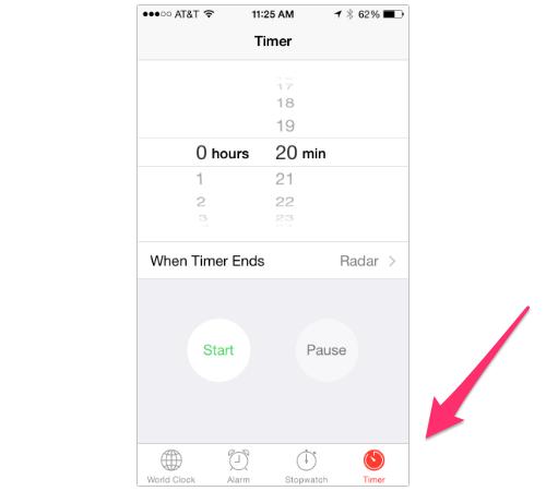 Bước 2: Vào ứng dụng Clock và chọn mục Timer ở góc dưới bên phải của màn hình.