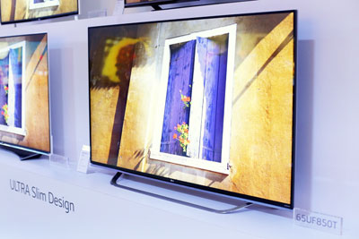 ... với màn hình có độ dày chỉ khoảng 10 mm. Trên những dòng TV Ultra HD cao cấp đời mới 2015 sử dụng công nghệ LCD LED, LG còn trang bị thêm công nghệ hiển thị mang tên Color Prime. Nó giúp tối ưu màu sắc, đem lại trải nghiệm hình ảnh chân thực, sống động hơn nhiều TV Ultra HD ra mắt trước đó. Độ tương phản rộng và màu sắc hiển thị rực rỡ hơn. Ngoài kiểu dáng và công nghệ hiển thị, hãng Hàn Quốc còn nâng cấp nền tảng thông minh Smart TV dùng hệ điều hành WebOS lên bản 2.0, cho tốc độ kết nối mạng, truy cập ứng dụng nhanh hơn 60% so với phiên bản hiện tại. Dòng TV Ultra HD 4K mới nhất của LG sẽ được đưa về Việt Nam trong 2015.