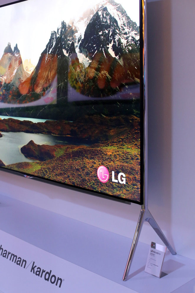 Cùng với OLED, nhà sản xuất Hàn Quốc vừa làm mới dòng TV LED Ultra HD 4K trong năm nay bằng việc ra mắt hàng loạt sản phẩm mới tại triển lãm InnoFest 2015. TV Ultra HD 4K của LG năm nay sẽ được đẩy lên kích thước khổng lồ là model UB980T 98 inch. Ngoài màn hình độ phân giải 4K cao gấp 4 lần chuẩn Full HD, LG UB980T 98 inch còn đi kèm với thiết kế đặc biệt, chân đế kim loại dạng khung tranh cách điệu khá lạ mắt. Còn khung viền bao quanh màn hình được bọc kim loại sáng bóng.
