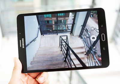Thay đổi nhiều về kiểu dáng và tính năng nhưng Tab S2 lại gần như giữ nguyên trang bị về camera như thế hệ trước. Camera phía sau độ phân giải 8 megapixel nhưng không có đèn flash LED trong khi phía trước là 2,1 megapixel.