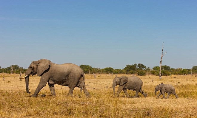 Những con voi biết sử dụng công cụ như những chiếc que để đánh dấu hoặc lá cọ để đập ruồi. Nhiều con voi nhỏ tinh nghịch có thói quen nhét đầy bùn đất vào chiếc chuông gỗ đeo quanh cổ để chuông không phát ra tiếng kêu. Nhờ đó, chúng có thể lẻn vào vườn chuối của nông dân vào ban đêm và ăn quả mà không gây ra tiếng động. Ảnh: Johan W. Elzenga/Shutterstock.
