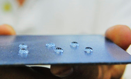 Sau khi phun phủ một loại hợp chất siêu kỵ nước do các nhà khoa học Mỹ tạo ra, một chiếc điện thoại có thể ngâm thoải mái trong nước rồi vớt lên mà vẫn khô ráo và hoạt động bình thường. Hợp chất phun kỵ nước này không cho phép các hạt nước tiếp cận bề mặt các thiết bị như: điện thoại di động.
