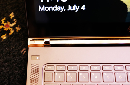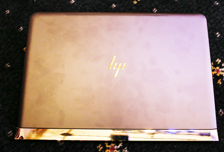 HP Spectre có khung làm bằng kim loại cắt CNC kết hợp phần đáy bằng carbon nên chỉ nhẹ 1,11 kg. Đây cũng là sản phẩm đầu tiên sử dụng logo mới của HP. Hãng cho biết các model cao cấp của mình sẽ sử dụng mẫu logo này.