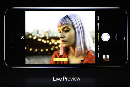Camera là trang bị được Apple dành nhiều thời gian chia sẻ nhất trên iPhone 7. Hãng tự tin cho biết iPhone thế hệ mới có camera hàng đầu. Trong đó, iPhone 7 mang đến cho người dùng iPhone trải nghiệm chụp hình gần với máy ảnh chuyên nghiệp DSLR. Camera kép lần đầu được Apple sử dụng, nhưng chỉ có trên phiên bản Plus, đem lại tính năng Zoom như ống kính quang học trên máy ảnh, cho phép phóng 2x đến 10x. Tính năng làm mờ hậu cảnh tạo ra hiệu ứng bokeh khi chụp ảnh chân dung, cận cảnh... Tất cả có được nhờ vào hệ thống 2 camera cùng độ phân giải 12 megapixel nhưng một có tiêu cự 28 mm và một có tiêu cự 56 mm.