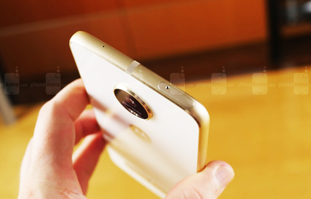Camera chính nằm ở lưng có độ phân giải 16 megapixel. Khác với G5, cách nâng cấp phần cứng trên dòng Moto Z và Z Play tiện dụng hơn khi sử dụng các chấu kết nối nằm ở lưng.
