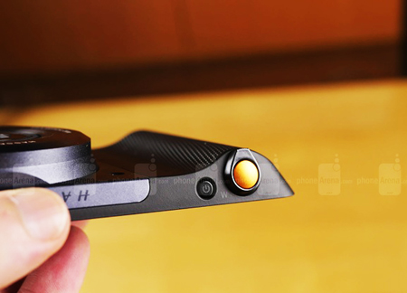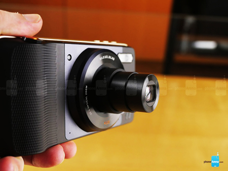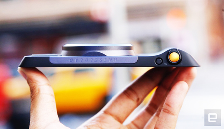 Cạnh trên ốp lưng của Hasselblad có phím nguồn, phím chụp hình và cần gạt để thu phóng khung hình như một máy ảnh thực thụ. Giá của phụ kiện này là 250 USD.
