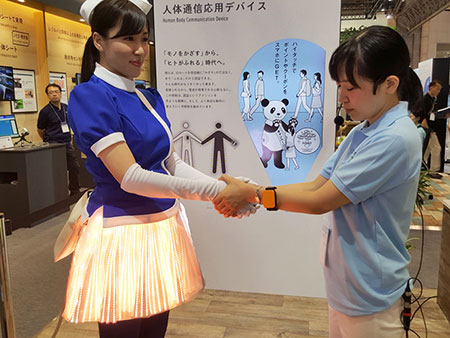 Panasonic đã phát triển hệ thống truyền dữ liệu có thể trao đổi thông tin thông qua các đụng chạm lên da. Nguyên mẫu thiết bị liên lạc sẽ gửi dữ liệu lên đến 100kbps qua các trường sóng radio trên làn da con người. Khi họ chạm vào một đối tượng hoặc người khác có bộ nhận tín hiệu phù hợp, dữ liệu sẽ được chuyển đi.