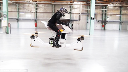 Mẫu thử nghiệm mới nhất của Công ty Hoversurf, The Scorpion – 3 với dạng động cơ điện một chỗ ngồi, được xem là mẫu xe bay 4 cánh đầu tiên trên thế giới. Phương tiện bay cá nhân này hiện có 2 cơ chế điều khiển: điều khiển thủ công bởi người lái hoặc điều khiển từ xa như với hệ thống máy bay không người lái.