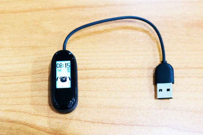 Ở mặt trước, sự xuất hiện của màn hình màu là cải tiến đáng chú ý nhất ở Mi Band 4. Độ phân giải màn hình tốt nên dù kích thước nhỏ và các dòng thông tin vẫn hiển thị rõ khi xem ngoài trời nắng. Phía dưới là nút bấm cảm ứng để trở về màn hình chính, được làm phẳng chứ không lõm xuống như Mi Band 3. Mặt trên của Mi Band 4 cũng không còn cong và bóng như thế hệ trước.