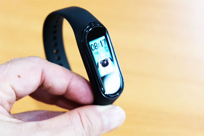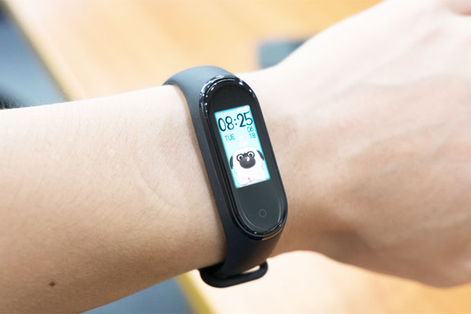 Màn hình màu mang lại diện mạo hoàn toàn mới cho Mi Band 4 chứ không bị nhàm chán như các phiên bản cũ. Người dùng có khoảng 70 kiểu mặt đồng hồ khác nhau nhưng lại không thể tùy chỉnh nội dung trên đó. Chẳng hạn, mặt đồng hồ đang chọn có hình con chó và số bước đi bộ, không thể đổi sang hiển thị lượng calo tiêu thụ.