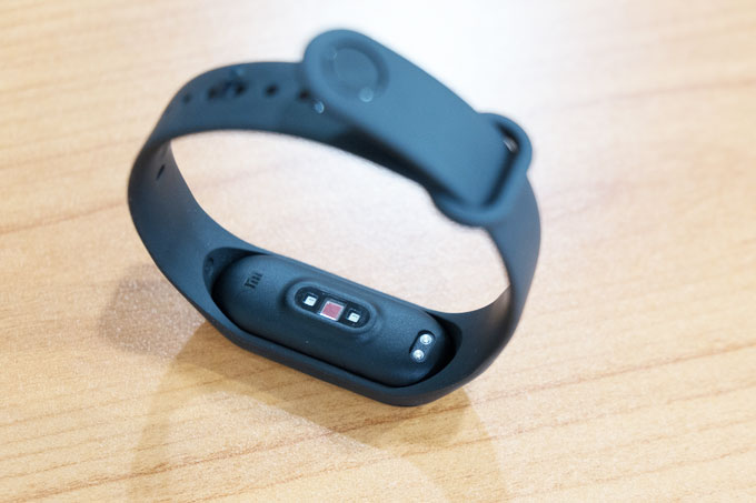 Mặt dưới Mi Band 4 tích hợp cảm biến đo nhịp tim với ánh sáng màu xanh phát ra khi hoạt động. Nó được làm lồi hẳn lên để tiếp xúc trực tiếp với cổ tay nên người dùng đeo chặt và lâu có thể để lại vết hằn trên da. Cảm giác đeo Mi Band 4 tương đối thoải mái do trọng lượng nhẹ, dây có nhiều mức điều chỉnh có thể phù hợp với nhiều cỡ cổ tay.