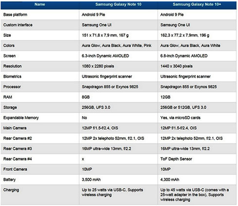Dưới đây là thông số kỹ thuật chi tiết của bộ đôi Galaxy Note 10 và Galaxy Note 10+: