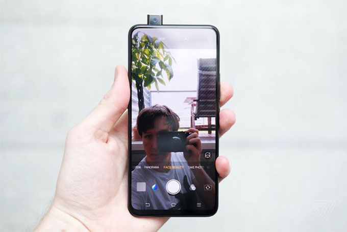 Hãng này trang bị cho máy hệ thống camera selfie trượt bên trong thân máy giúp cho màn hình được mở rộng ra gần sát viền. Hệ thống camera trước của máy cũng tiếp tục được trang bị độ phân giải cao, lần này lên đến 32 MP và hỗ trợ AI để chỉnh sửa bức ảnh đẹp hơn.