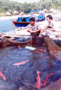 | Thu hoạch cá mú lồng ở TP. Nha Trang.