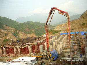 | Công trình thủy điện Bản Chát tại tỉnh Lai Châu đang trong quá trình thi công, dự kiến hoàn thành vào tháng 1-2011. |