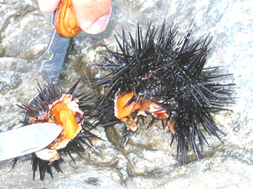 Hôm ra Nha Trang, chúng tôi “phóng” ngay ra các đảo. Ấy là một buổi trưa thú vị phía sau đảo Con Sẻ Tre… Thằng bé làng chài đen nhẻm chèo ghe đưa chúng tôi dừng lại trước khoảng nước lặng sát chân núi. Nước trong đến nỗi có thể thấy rõ những dãy đá ngầm, san hô phía dưới khoảng 10m. Thằng bé đưa tôi mái dầm: “Chú giữ giùm, con xuống trước nha!”. Không ống thở, chỉ một chiếc móc sắt đơn giản, nó “ùm” xuống nước. Chỉ sau 2 cú quẫy đạp, thằng bé đã xuống sát đáy rặng đá ngầm, tìm kiếm… Trông nó như một chú rái cá đen trũi. Khuất trong những kẽ đá ấy là một sản vật biển náu mình, chiếc móc sắt khều nó ra, “con rái cá” nhô đầu lên mặt nước “chú cầm lấy, cẩn thận kẻo nó “chích” chú ráng chịu đó!”. Tôi rụt rè cầm lấy phía đầu một vật tròn, tua tủa gai nhọn, chỉ bằng trái chôm chôm… Những gai nhọn ngo ngoe… nó chính là con nhum. Trông thì sợ nhưng lát nữa ăn sẽ biết… Hào hứng với những cú lặn nhẹ nhàng như cá, tôi quên mất mình là dân thành phố đi du lịch… Hít một hơi dài, tôi phóng theo nó, nước biển nhẹ, biển lặng dễ lặn, tôi theo thằng bé tìm kiếm những “quả chôm chôm nâu đen” ẩn mình trong đá. 20 phút, trên lòng thuyền đã có khoảng 10, 15 trái cầu gai ngo ngoe… Cách tính tiền nhum không theo ký lô mà theo số lượng, một con 10.000 đồng, bao nhiêu con tính bấy nhiêu tiền. Khách ra đảo chơi muốn ăn thì phải tìm đám trẻ con của ngôi làng chài nho nhỏ phía sau đảo, chỗ có nhiều san hô, đá ngầm nhờ lặn bắt. Nhum là thứ phải ăn ngay, không để lâu được.