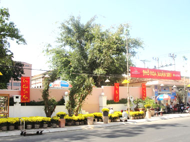 | Phố hoa xuân trên đường Yersin (TP. Nha Trang) đã đưa vào hoạt động từ 23 tháng Chạp. |