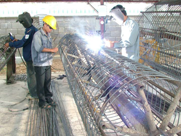 | Một công đoạn trong dây chuyền sản xuất các sản phẩm bê tông ly tâm ở Công ty Cổ phần Bê tông ly tâm Điện lực Khánh Hòa. |