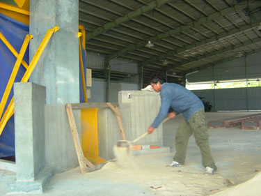| Đưa nguyên liệu vào sản xuất gạch nhẹ không nung tại Công ty Cổ phần Thương mại và Dịch vụ xây dựng Minh Đức. |