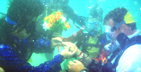 | Đám cưới dưới nước - sản phẩm du lịch gắn liền với dịch vụ lặn biển. |