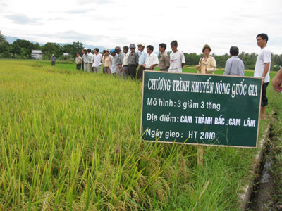 Năm 2010, Trung tâm Khuyến nông quốc gia hỗ trợ triển khai mô hình “3 giảm 3 tăng” sản xuất lúa chất lượng với quy mô 52ha tại 4 xã: Suối Tiên (Diên Khánh), Cam Thành Bắc (Cam Lâm), Ninh Quang (Ninh Hòa) và Vạn Hưng (Vạn Ninh). Định mức hỗ trợ là 40% giống, 20% vật tư với tổng trị giá 1,4 triệu đồng. Mô hình nhằm thay đổi tập quán gieo sạ dày, bón phân không cân đối, bón nhiều đạm và lạm dụng thuốc bảo vệ thực vật, giúp nông dân tăng năng suất, chất lượng và hiệu quả sản xuất lúa.