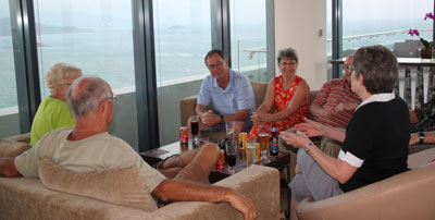 | Khách du lịch sử dụng dịch vụ ở quầy bar Altitude, tầng 28 của khách sạn Sheraton |