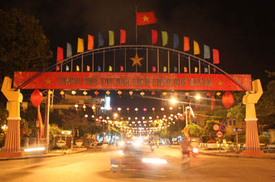 | Đường Trần Hưng Đạo, TP. Tuy Hòa lung linh ánh đèn lồng. |