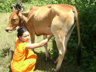Vị lương y “vườn” tiết lộ cho chúng tôi một số bí quyết chữa bệnh cho GS, chẳng hạn: Bò sinh con bị sưng vú thì dùng 3 hạt gấc, đập bỏ vỏ cứng, lấy nhân bên trong, giã nhỏ ngâm với giấm, khoảng 4 ly con, sau 12 giờ thoa vào vết sưng với 3-5 lần/ngày, 3 ngày sau sẽ khỏi. Trường hợp bò bị thương hàn: Lấy sả, é trắng (hương nhu) mỗi thứ 3 gam, giã nhỏ, hòa với 1 lít nước tiểu người (trẻ con), lọc sạch cho bò uống, cách 2 giờ uống một lần, lấy xác thuốc thoa đắp lên mình bò cho da hấp thụ, bò sẽ dần ấm lại và khỏi bệnh. Đối với bò thả rông bị trúng thuốc bảo vệ thực vật: lấy 1/2kg cỏ sữa và 1kg rau muống đỏ (rau muống nước) cùng giã nhỏ, hòa với 3 lít nước uống, lọc sạch cho bò uống 3 lần/ngày sẽ giải hết độc… Ông Úc rất tâm đắc với bài thuốc chữa bệnh bạch hầu và lở mồm long móng trên GS. Đối với bệnh bạch hầu: khi thấy ngoài da cổ họng GS có màu hồng đỏ, lan rộng và chuyển sang màu trắng, nếu không phát hiện sớm con vật sẽ nghẹt thở và chết. Lấy củ chuối xà lụi (chuối tiêu, già hương) đã thối, dùng tay vo tròn từng miếng mỏng, đắp vào chỗ sưng, lấy vải sạch buộc chặt trong 20-30 phút. Theo dõi vết thương giảm dần màu đỏ, trắng cho đến khi dứt hẳn. Bài thuốc chữa lở mồm long móng ở trâu bò: Dùng chất chua (khế, chanh) vắt lấy nước, vệ sinh miệng, lau sạch nước nhờn rồi lấy 1kg lá vĩ hổ (lưỡi hổ) tươi, giã nhỏ, hòa với 1 lít nước, lọc sạch, cho bò uống 3 lần/ngày, điều trị 2-3 ngày liên tục. Mỗi lần cho bò uống thuốc thì cho thêm 1 thìa cà phê muối ăn. Tránh cho bò ăn rơm rạ khô cứng, làm đau rát mồm bò. Muốn phòng bệnh cho cả đàn bò thì cho bò ăn lá vĩ hổ xắt nhỏ, trộn chung với cỏ, cám, nước muối cho ăn bổ sung để tăng sức đề kháng, bò khỏi bệnh, bớt lây lan.