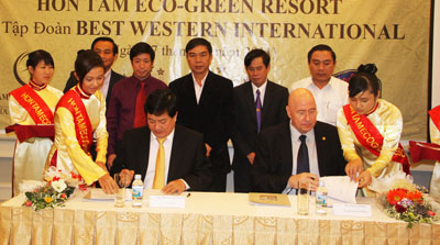 | Lễ ký kết hợp đồng quản lý và sử dụng thương hiệu giữa Công ty Cổ phần Hòn Tằm Biển Nha Trang và Tập đoàn Best Western. |