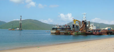 | Sau khi khởi công, Cảng trung chuyển container quốc tế Vân Phong phải dừng lại do suy thoái kinh tế và điều chỉnh quy mô dự án. |