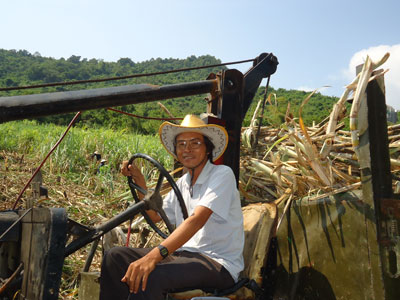 | Anh Phạm Văn Chương đang thu hoạch mía |