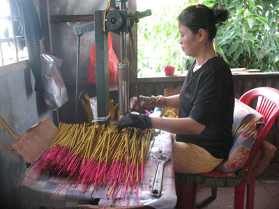 | Nghề làm nhang giải quyết việc làm cho phụ nữ nhàn rỗi. |