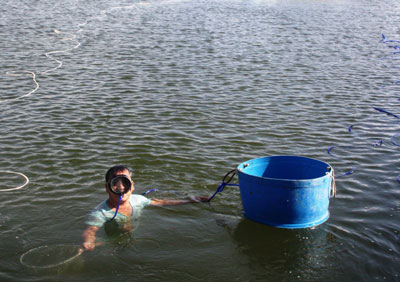 Dự án Ứng dụng công nghệ nuôi ốc hương kết hợp với tu hài trên biển theo hướng bền vững tại vịnh Vân Phong do Chi cục Nuôi trồng thủy sản Khánh Hòa chủ trì thực hiện, Viện Nghiên cứu nuôi trồng thủy sản III chuyển giao kỹ thuật, công nghệ. Trong 2 năm 2012 và 2013, hàng trăm hộ dân trên địa bàn tỉnh được hỗ trợ, hướng dẫn để thực hiện mô hình. Tại xã Vạn Hưng, bên cạnh hướng dẫn kỹ thuật, Dự án còn hỗ trợ con giống, thức ăn, vật tư để nuôi ốc hương, tu hài cho 20 hộ dân tham gia. Ông Nguyễn Sang (thôn Xuân Đông, xã Vạn Hưng) cho biết: “Qua 2 năm tham gia Dự án, tôi nhận thấy hiệu quả cao hơn hẳn so với nuôi đơn loài ốc hương hoặc tu hài. 2 năm trở lại đây, trong khi các hộ xung quanh có ốc bị bệnh và chết hàng loạt thì các hộ nuôi ốc hương kết hợp với tu hài không bị ảnh hưởng lớn. Nhờ vậy, hiệu quả đạt cao hơn”. Theo tính toán của ông Sang, mỗi vụ, ông được hỗ trợ 4 vạn con giống ốc hương, 160 rổ tu hài để thả nuôi. Kết quả, ông đã thu được 400kg ốc hương, lợi nhuận đạt 40 triệu đồng; còn số tu hài chưa đủ kích cỡ nên ông tiếp tục nuôi, dự kiến sẽ thu hơn 15 triệu đồng. Tính ra, với 4 vạn con ốc hương và 160 rổ tu hài thả nuôi kết hợp đã cho gia đình ông lợi nhuận 65 triệu đồng/vụ.