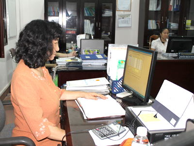 | Công chức Phòng Quản lý nợ và Cưỡng chế nợ thuế rà soát các trường hợp nợ thuế. |