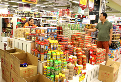 | Các siêu thị đã chuẩn bị nhiều hàng hóa phục vụ Tết. |