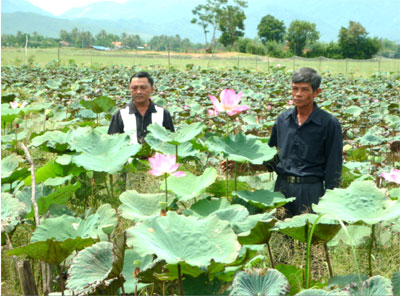 | Nông dân đã chuyển đổi ruộng lúa 1 vụ kém hiệu quả sang trồng sen cho thu nhập cao. |