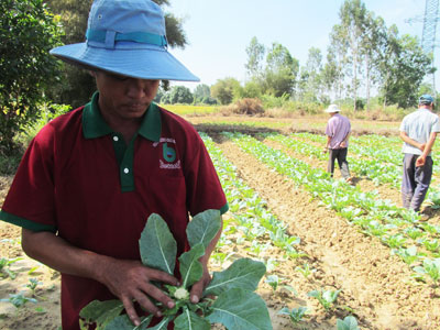 Nhiều năm trồng súp-lơ, ông Thuận biết rõ quy luật của thị trường. Vụ Tết thường bị dư hàng, nên ông chia ra diện tích trồng súp-lơ bán Tết và sau Tết để dễ có đầu ra. Thế nhưng, chẳng hiểu vì sao súp-lơ vụ sau Tết đã nở bông sớm một cách bất thường. Theo ông Thuận, hồi tháng 8-2013, ông có mua 8 gói hạt giống súp-lơ tại đại lý Hồng Hải (chợ Ninh Hòa). Trên bao bì có ghi: Hạt giống cải bông White corona F1, khối lượng 10g, nguồn gốc Nhật Bản. Ông chia ra 4 gói trồng cho thu hoạch tháng Chạp (bán vụ Tết) và 4 gói trồng cho thu hoạch tháng Giêng (bán sau Tết). Thông thường, súp-lơ sau khi ươm 1 tháng thì đưa ra ruộng trồng, sau 50 - 60 ngày cây ra bông và tiến hành thu hoạch. 4 gói giống gieo trước, cây phát triển tốt và đang chuẩn bị thu hoạch. Thế nhưng, 4 gói giống gieo sau (2.000m2), mới trồng được 15 ngày đã có bông.