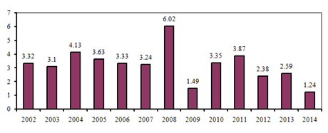 Trước hết, có khả năng sẽ lặp lại diễn biến của 2 năm trước (tăng thấp, thậm chí còn có dấu hiệu của thiểu phát) từ tháng 3 - tháng 7 (năm 2012 giảm 0,16%, năm 2013 tăng chưa đến 0,1%). Mặc dù vẫn đạt được mục tiêu đề ra cho cả năm, nhưng về “nhịp độ” vẫn là tư duy “kiềm chế”, chứ chưa phải là tư duy “kiểm soát” như mục tiêu của năm nay.