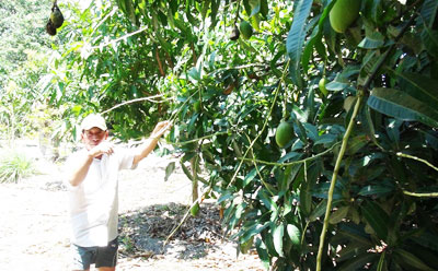 | Vườn xoài thưa thớt quả của ông Nguyễn Hữu Kính. |