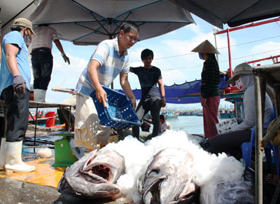 Những ngày này, tuy giá cá ngừ đại dương tại cảng Hòn Rớ (TP. Nha Trang) tăng nhưng nhiều tàu câu vẫn thua lỗ. Tàu ra khơi khai thác không hiệu quả, bạn tàu thu nhập không đủ sống đang khiến các tàu có nguy cơ nằm bờ.