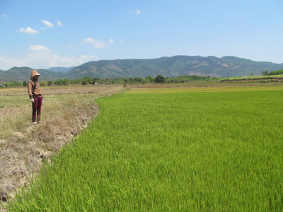 | Nhiều diện tích lúa nước tại xã Khánh Hiệp thiếu nước tưới. |